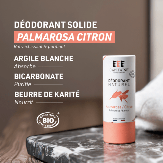 • Déodorant BIO stick naturel et efficace Palmarosa Citron